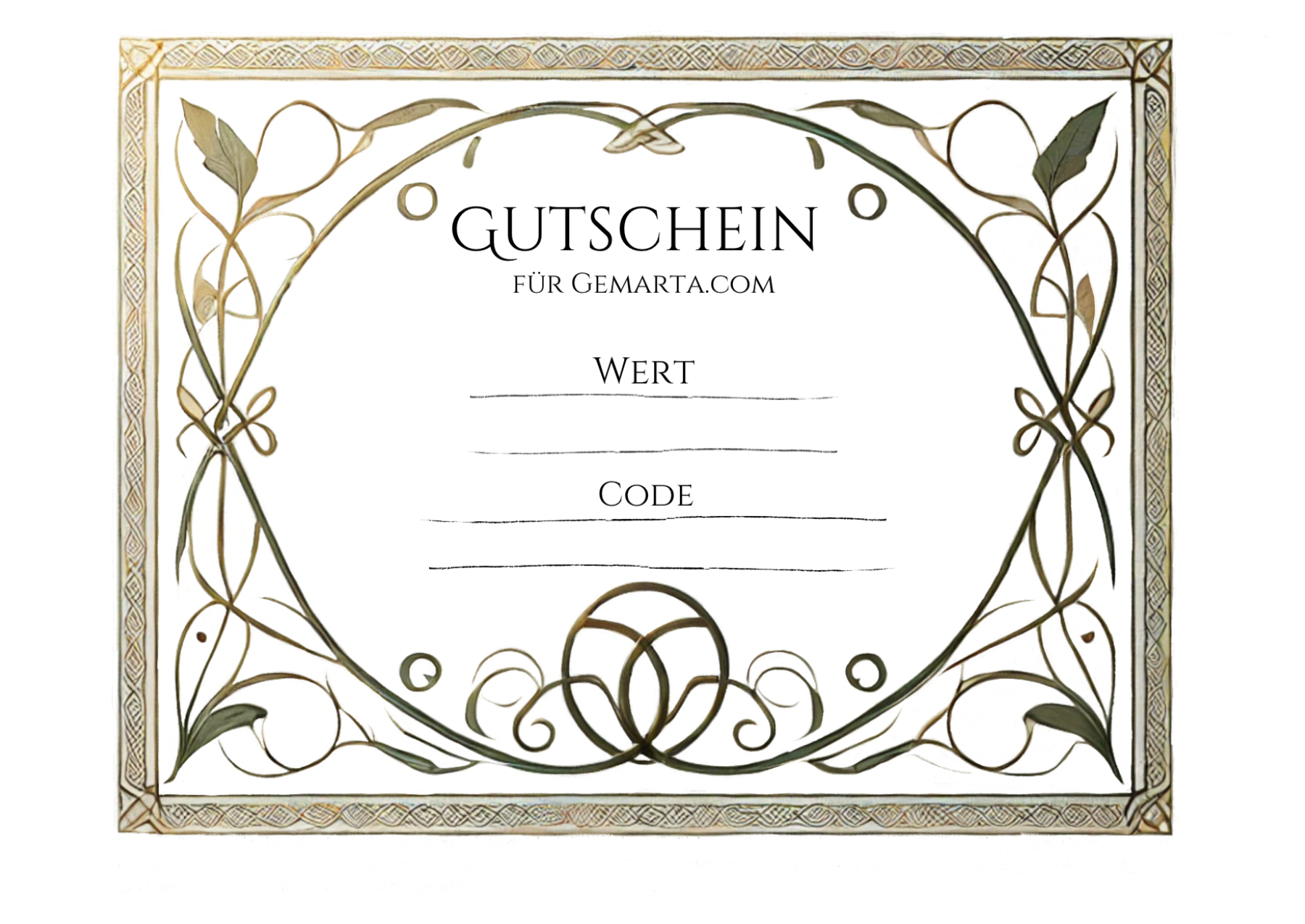 Dieser Gutschein ist ab dem Ausstellungsdatum drei Jahre lang gültig und kann so oft genutzt werden, bis der gesamte Gutscheinwert aufgebraucht ist. Eine Barauszahlung ist nicht möglich. Der verbleibende Restwert bleibt innerhalb der Gültigkeitsdauer erhalten und kann bei weiteren Einkäufen im Online-Shop von gemarta.com eingelöst werden.