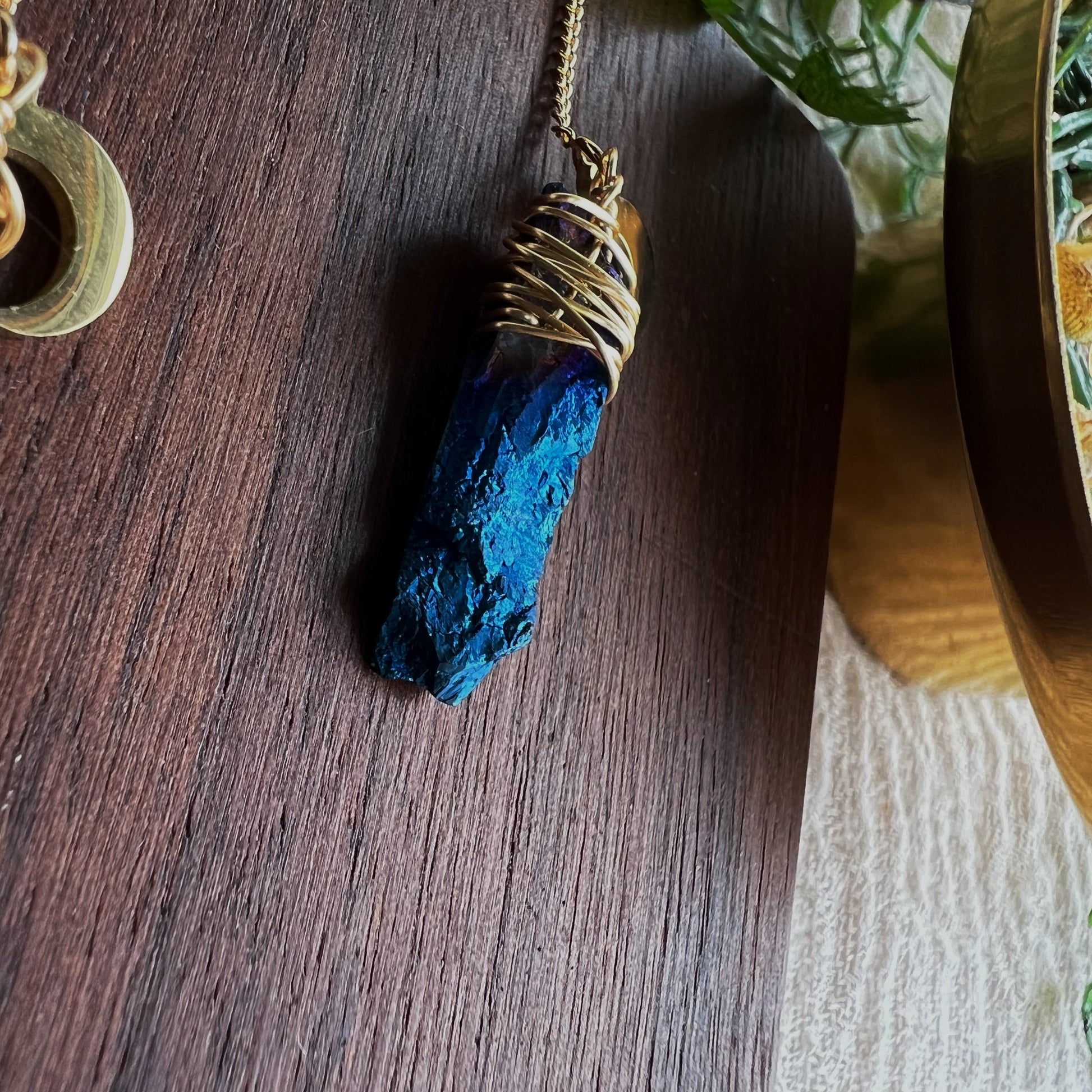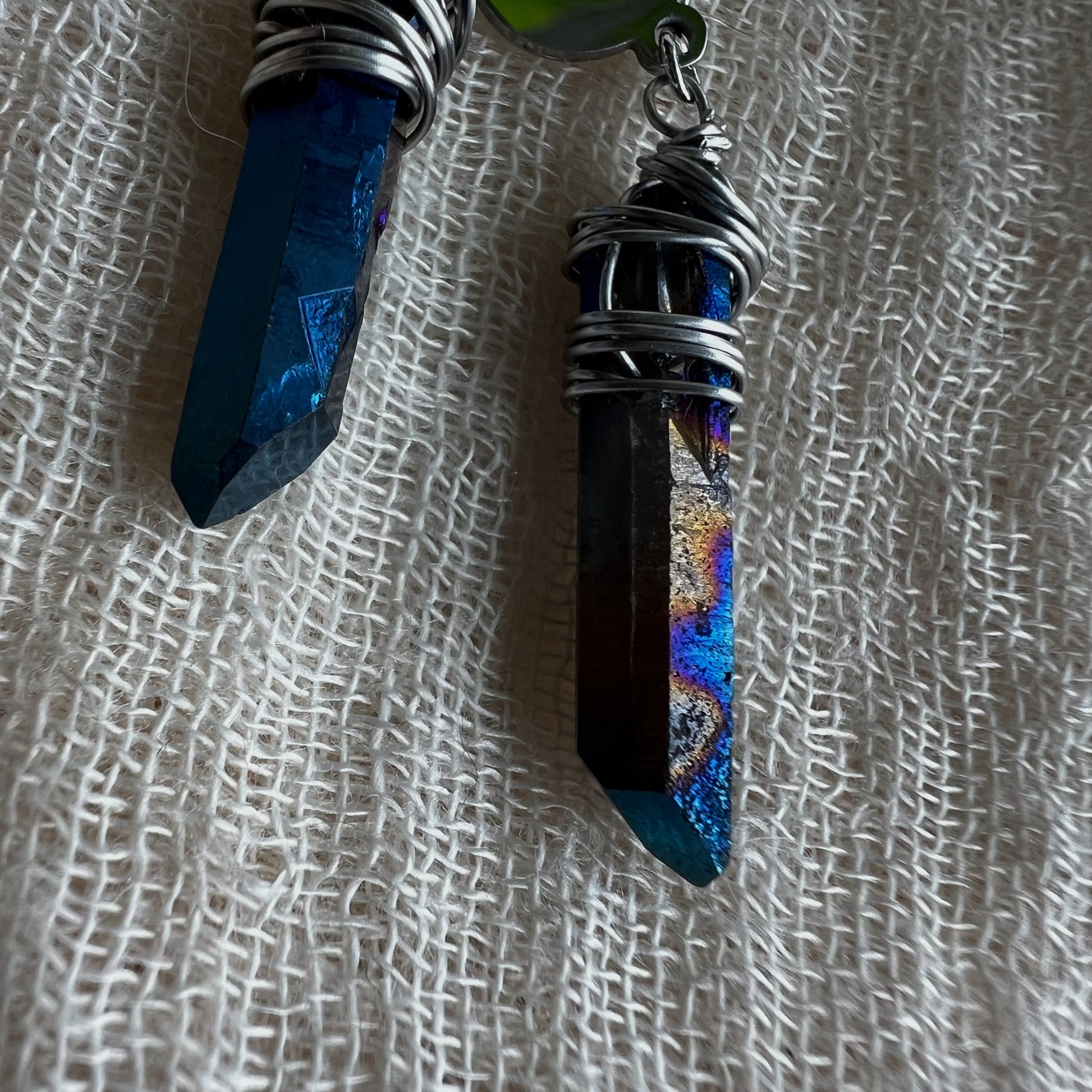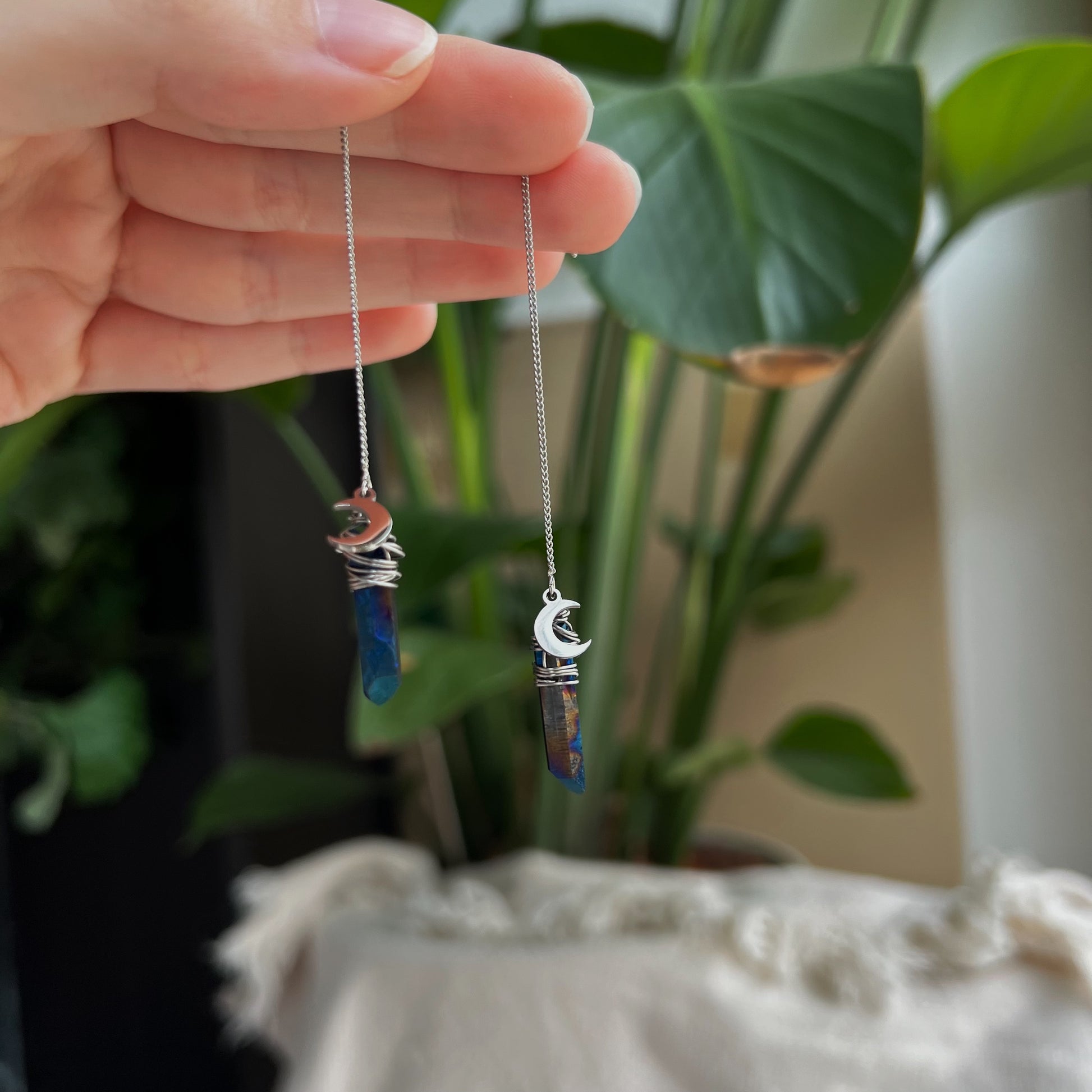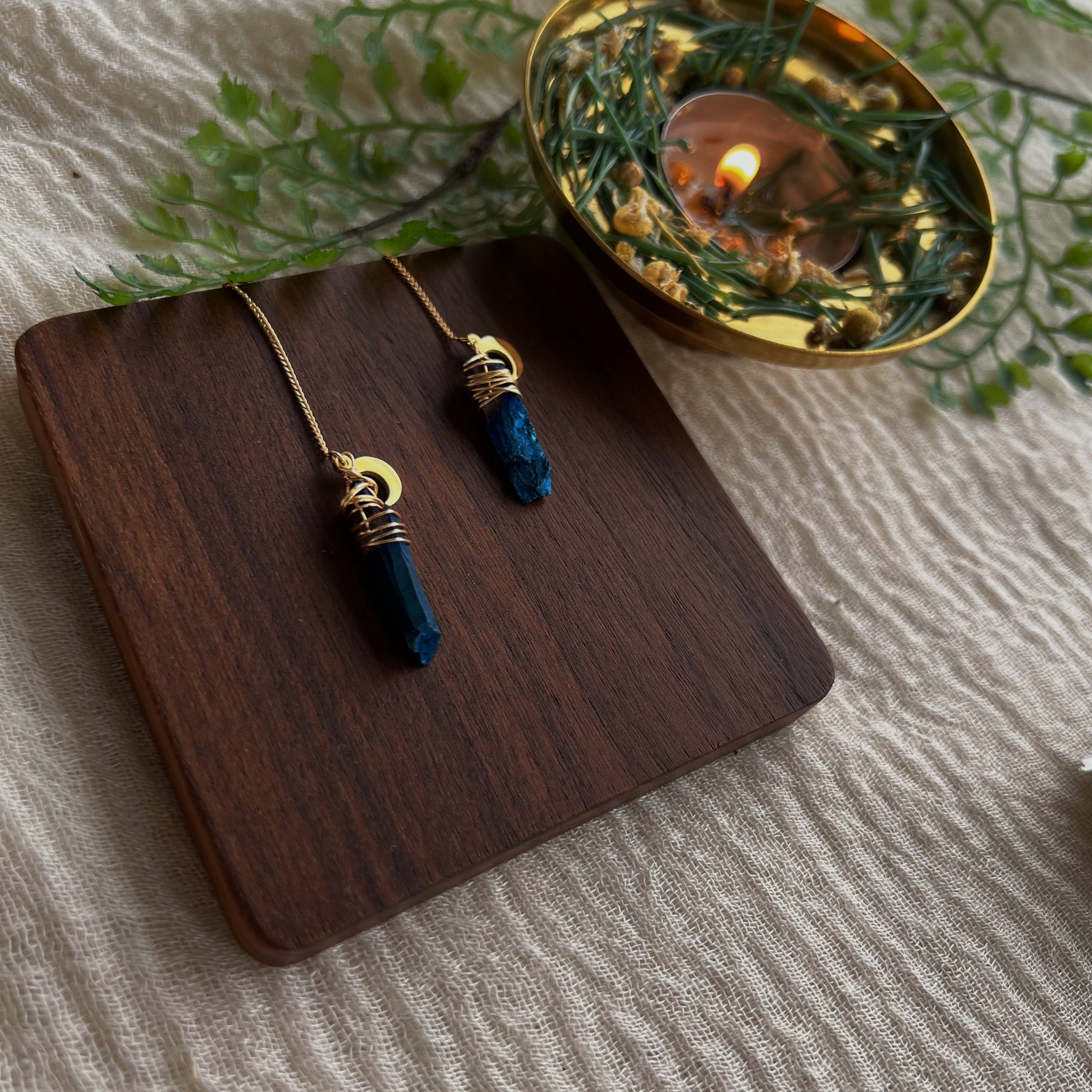 Diese handgefertigten Ohrringe, verziert mit tiefblauen Kristallen und goldenen Mondsicheln, fangen die geheimnisvolle Aura einer klaren Halloween-Nacht ein. Sie sind das ideale Schmuckstück für alle, die einen Hauch von Magie und Mystik in ihren Look zaubern wollen.