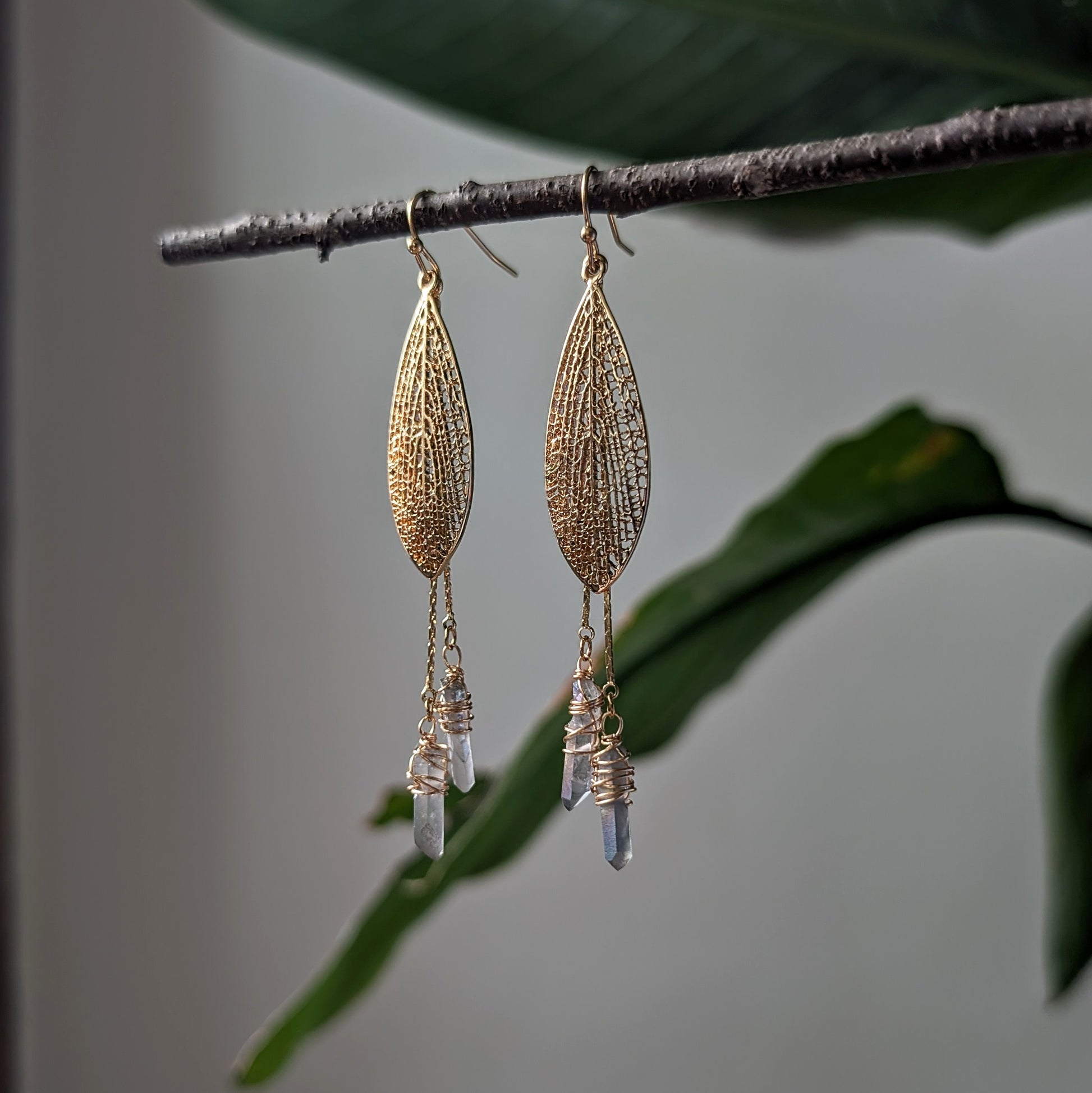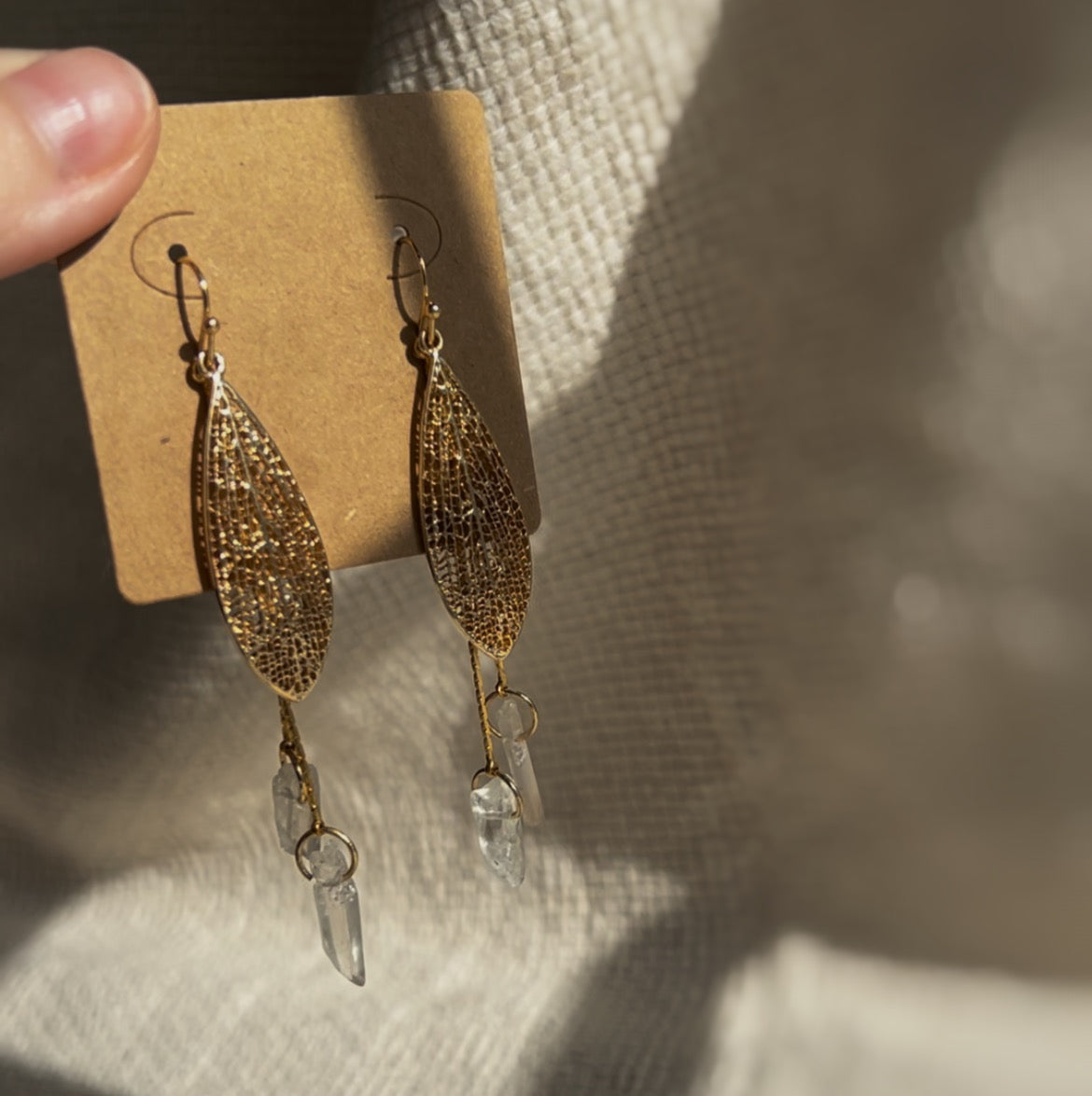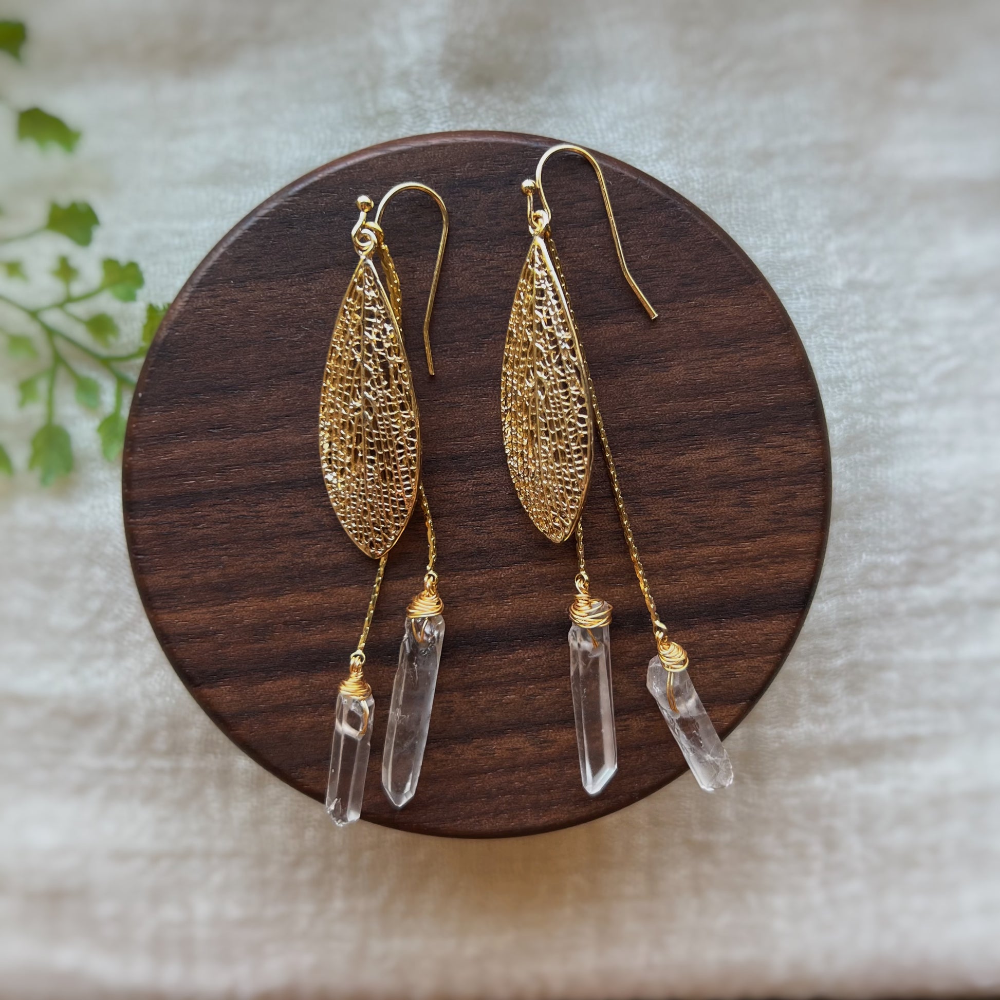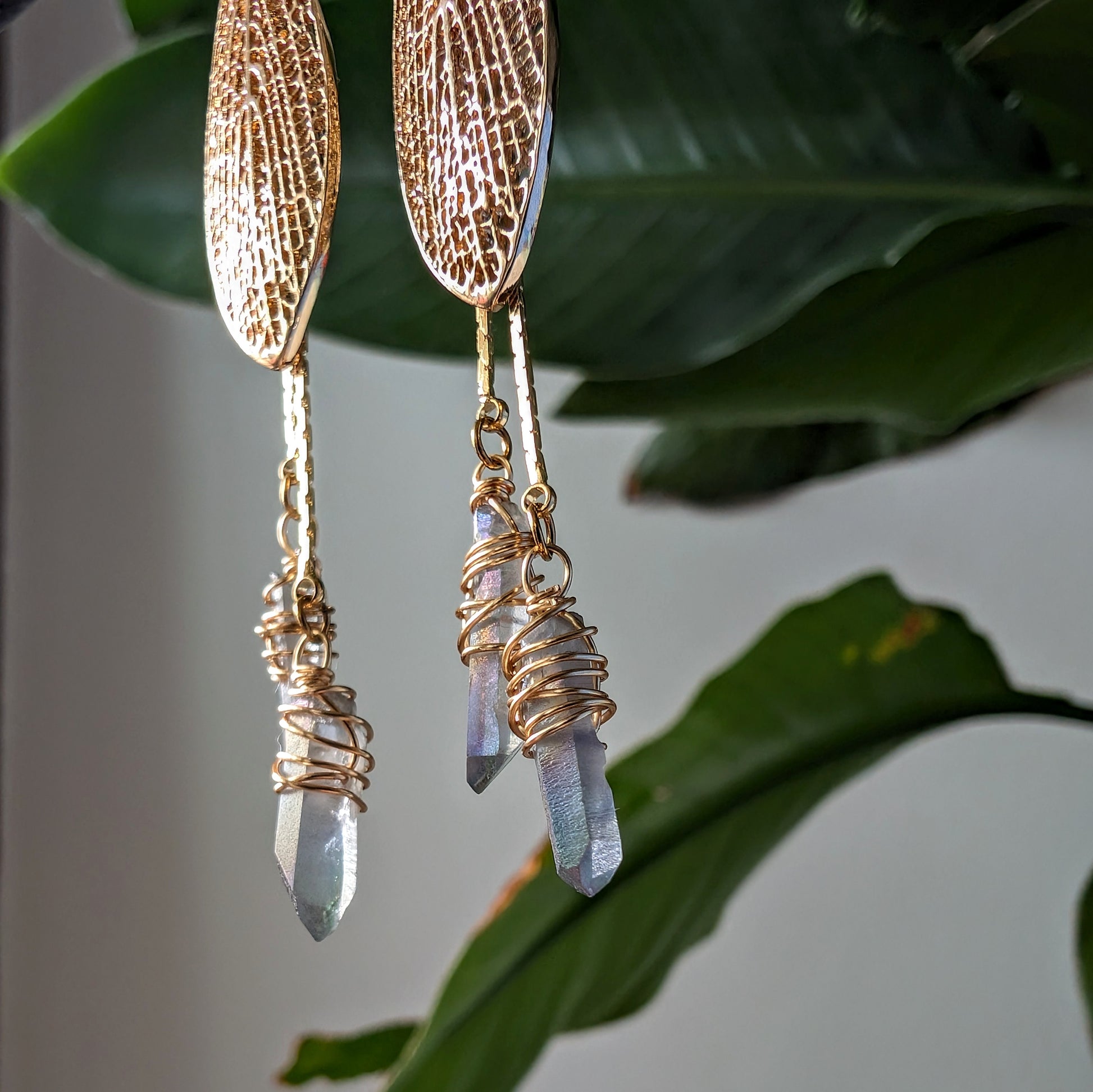 Entdecke deine magische Seite mit diesen eleganten Hängeohrringen. Feine goldene Feenflügel und glänzende Bergkristall-Anhänger verleihen deinem Look einen Hauch von Eleganz und Mystik. Zeitlos und raffiniert, perfekt für dich, wenn du das Besondere liebst.
