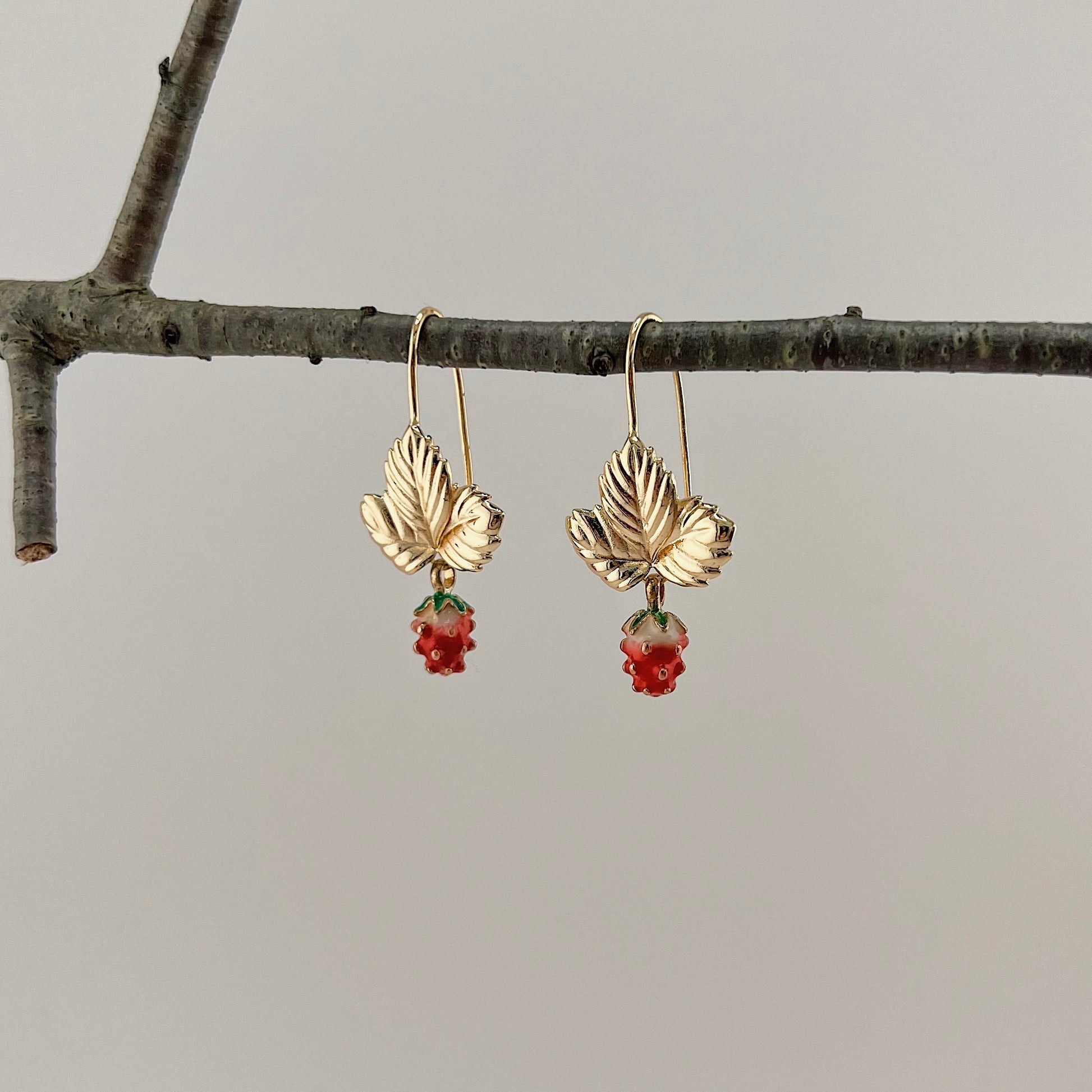 JAGÓDKA - Hängeohrringe mit Walderdbeer-Anhänger