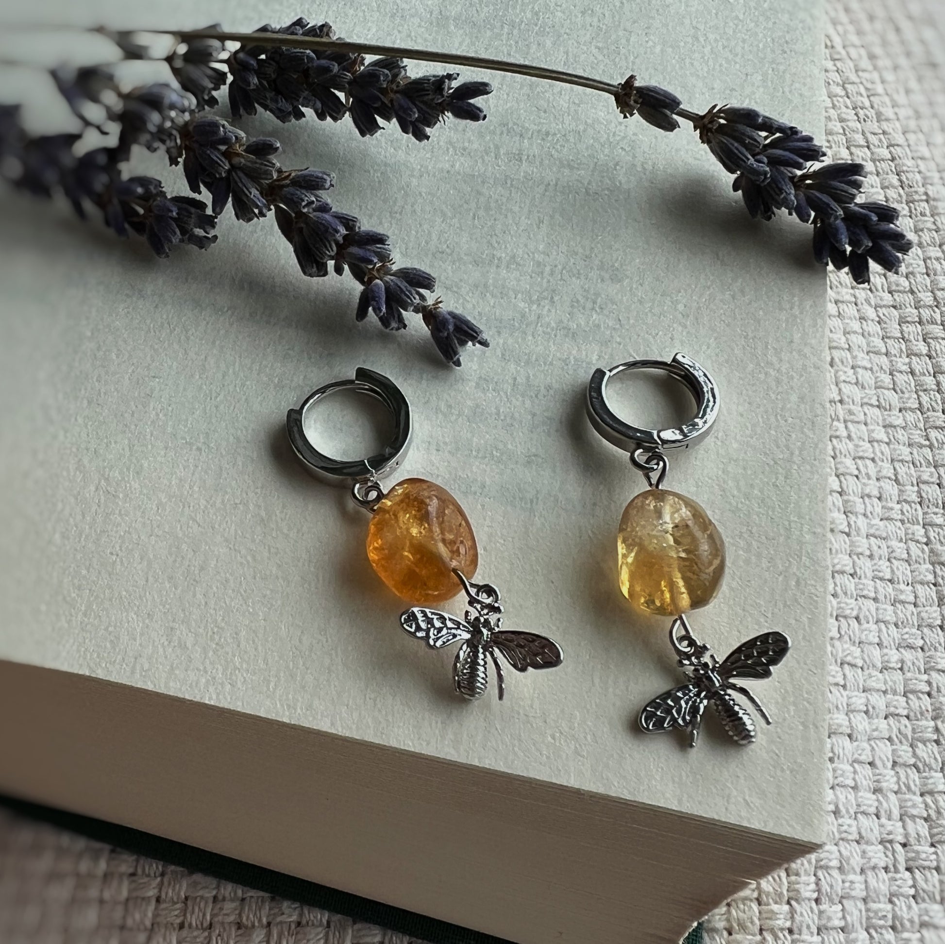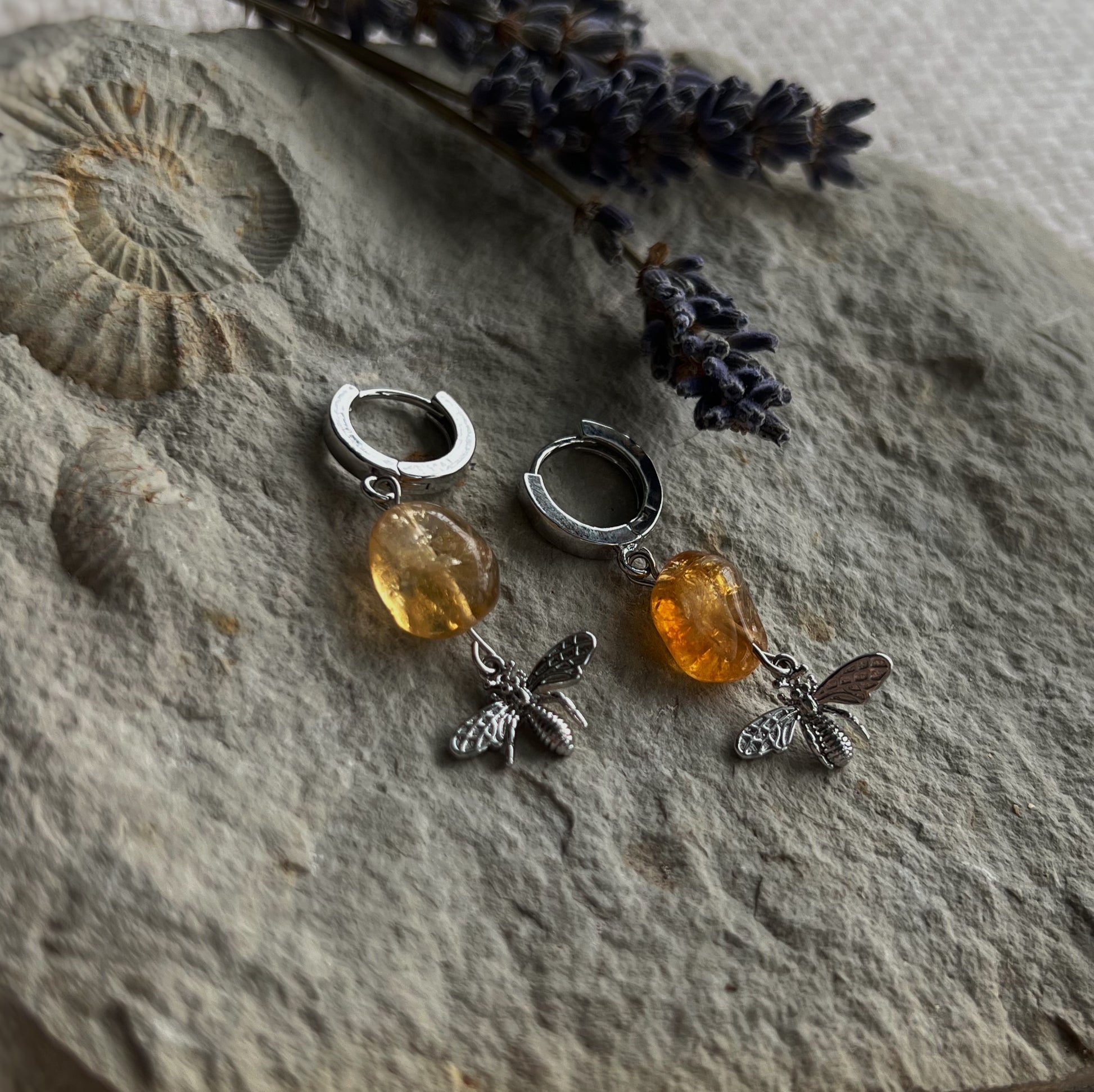 Diese kleinen Creolen sind wie ein Liebesbrief an die Natur, mit zarten Citrinanhängern, die den goldenen Glanz von Honig widerspiegeln, und bezaubernden Bienenanhängern. Der Citrin erinnert an die süße Fülle der Natur und die Bienenanhänger symbolisieren die unermüdliche Arbeit dieser faszinierenden Kreaturen. Handgefertigt mit Liebe zum Detail, sind sie ein elegantes Symbol für die zeitlose Schönheit und Bedeutung der Natur.