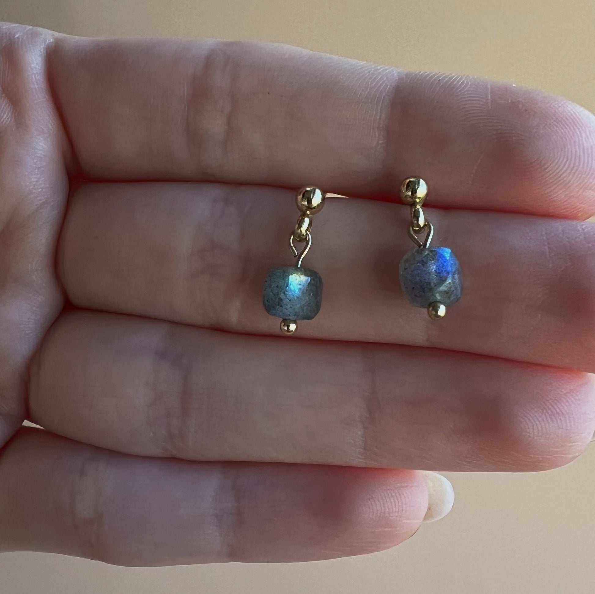 Die Nerida Stecker aus Edelstahl setzen mit ihren facettierten, würfelförmigen Naturstein-Anhängern ein klares Statement. Die edel geschliffenen Steine fangen das Licht bei jeder Bewegung ein und verleihen deinem Stil eine einzigartige, natürliche Brillanz.