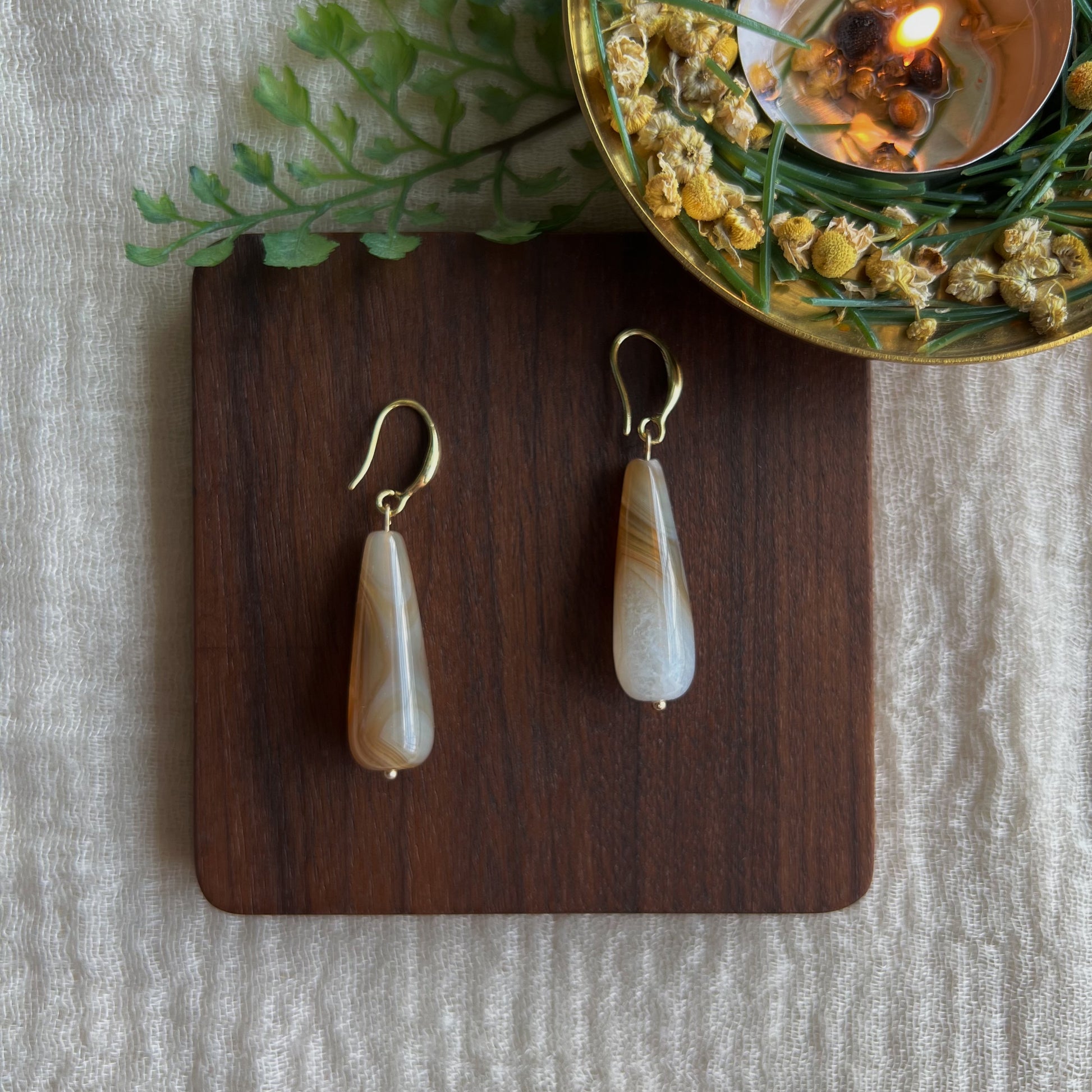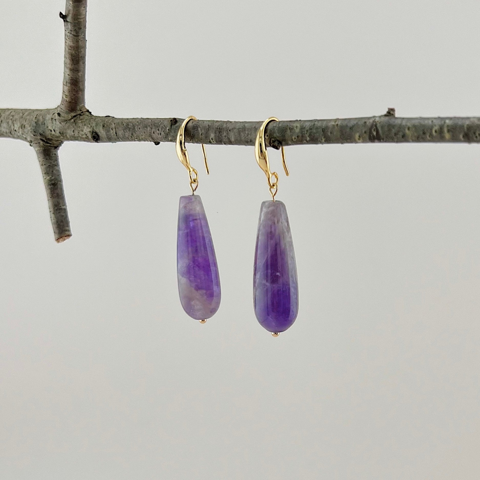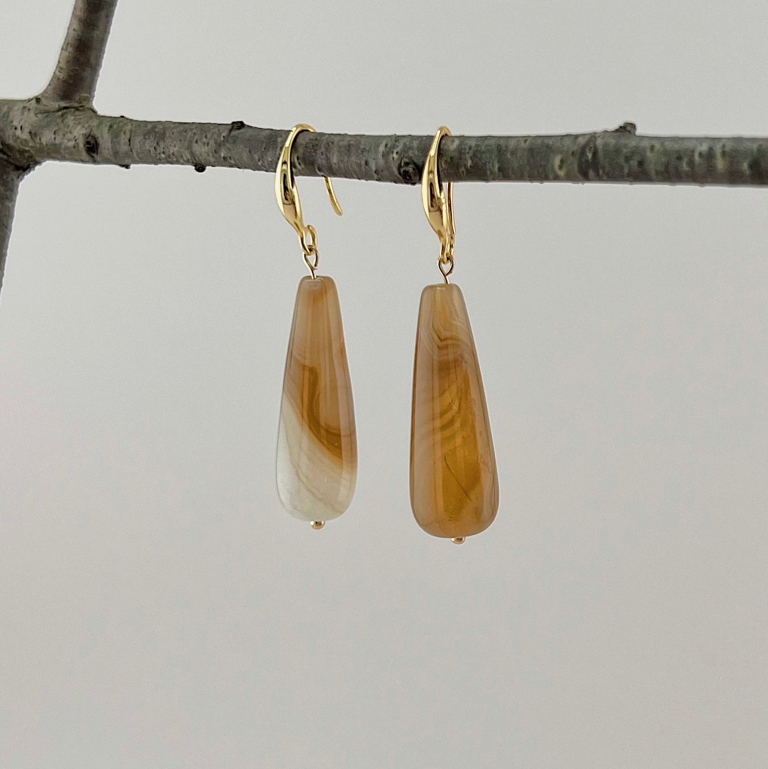 Diese Pendelohrringe aus vergoldetem Messing mit großen tropfenförmigen Edelsteinen sind perfekt für dich, wenn du Edelsteine liebst und sie immer bei dir tragen möchtest .