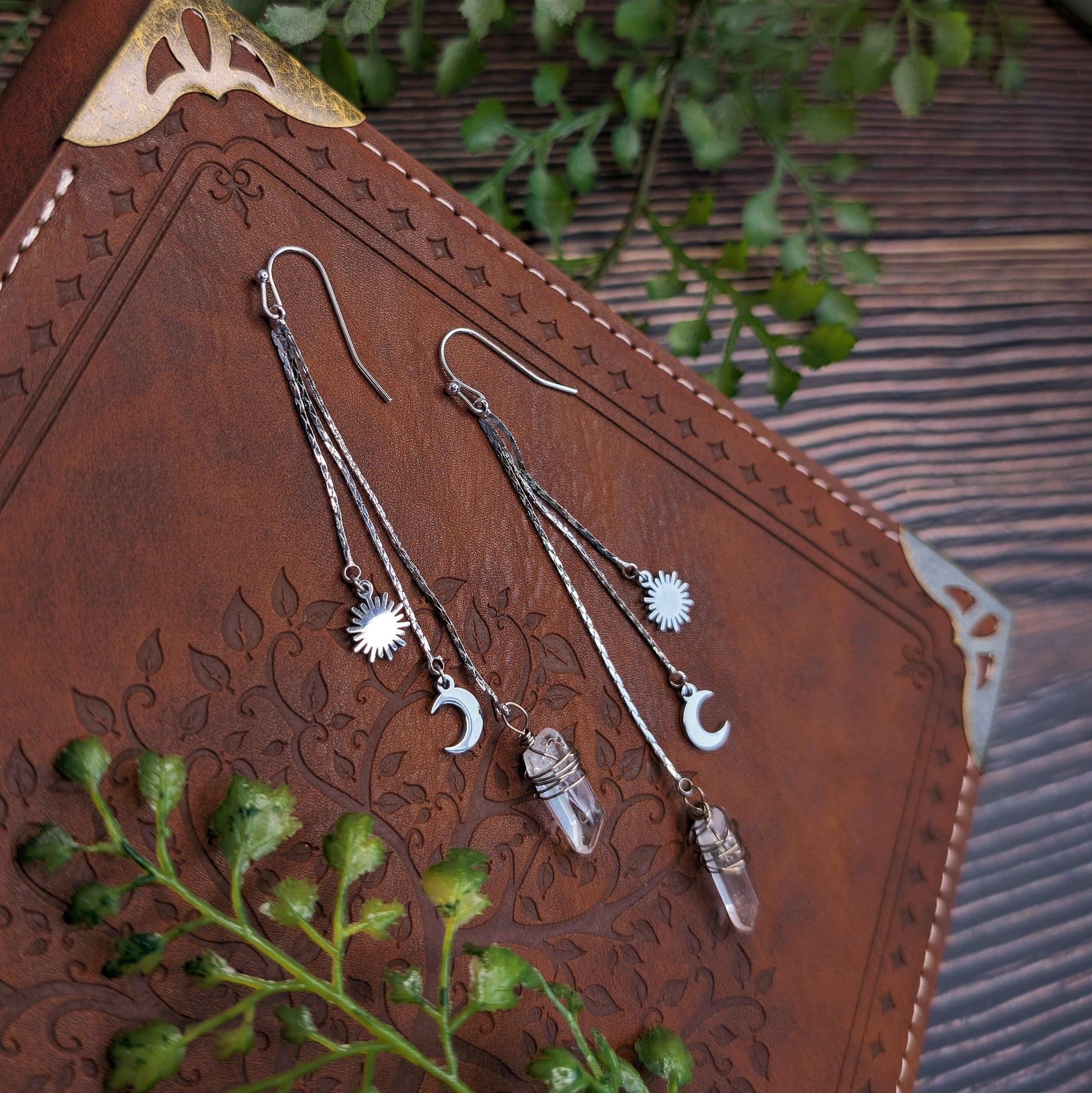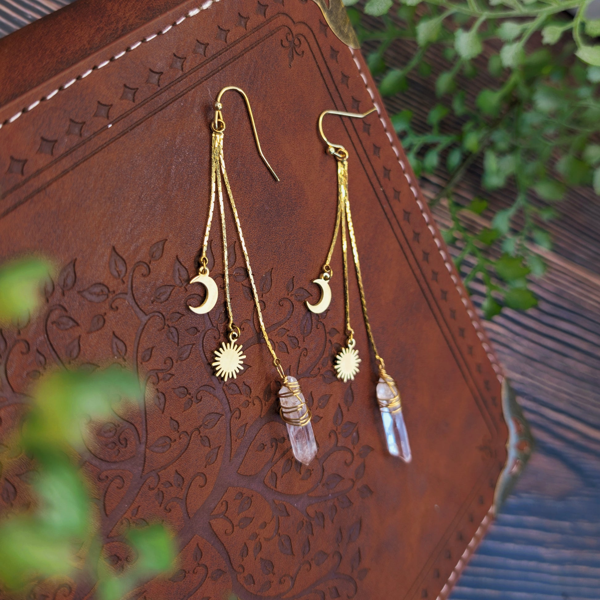 Diese Hängeohrringe aus Messing sind von der Schönheit des Himmels und der Erde inspiriert. Diese Ohrringe sind nicht nur ein Blickfang, sondern auch eine Erinnerung an die Schönheit und Mystik des Universums.