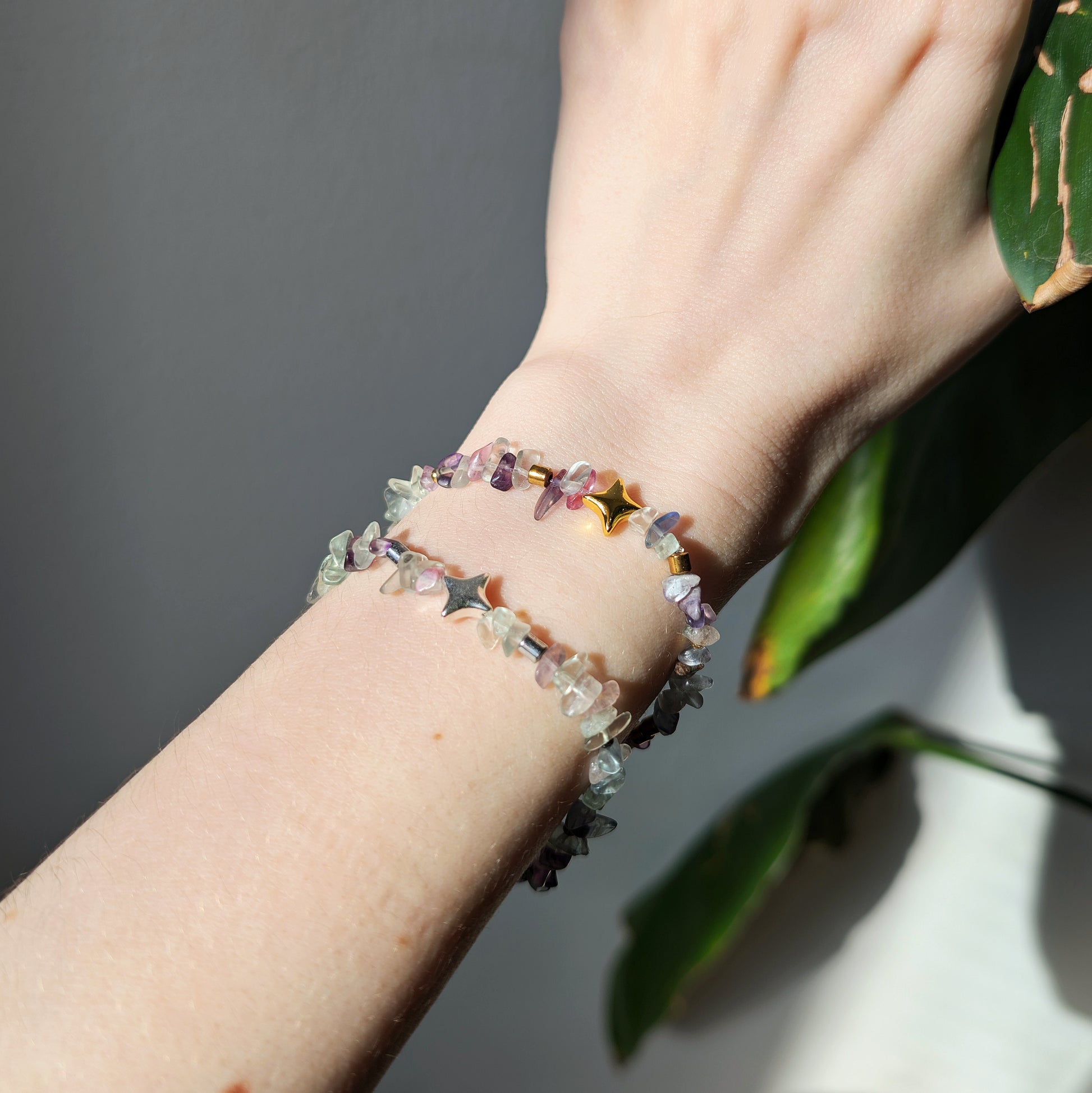 ✧ Armband mit Fluorit-Splittern und goldfarbenen Akzenten